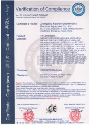Certification d'économie d'énergie pour les compresseurs à vis KHE18-8, KHE22-8, KHE30-8, KHE37-8, KHE45-8, KHE55-8, KHE75-8, KHE90-8, KHE110-8, KHE132-8, KHE160-8, KHE200-8, KHE250-8
